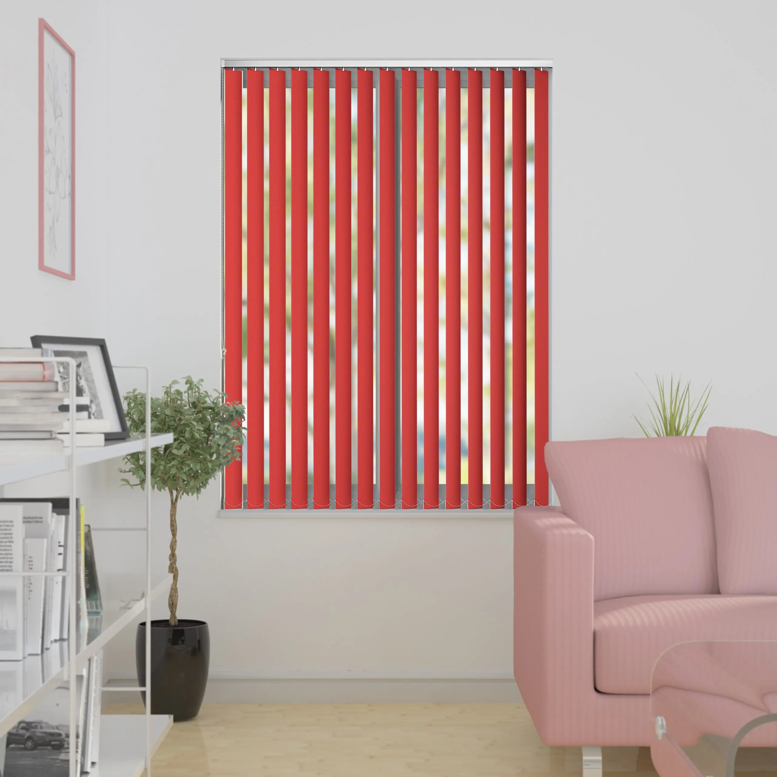 The Banlight Duo Fr Scarlet vertical blinds are available in a bright, intense shade of red and plain design. These polyester blinds offer a resistance to moisture and can be used in all wet environments like your bathroom as well as other areas of your house where you crave privacy and a blackout solution such as your bedroom. The Banlight vertical blinds feature thermal properties, antibacterial coating and fire retardant nature.