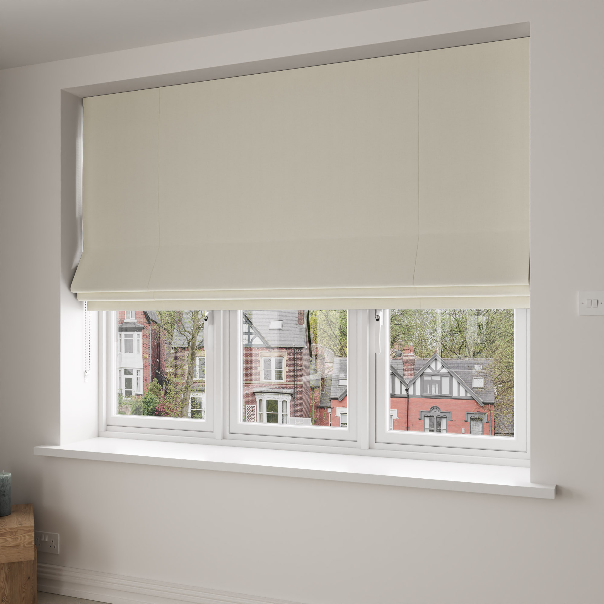 Choose the ageless beauty of Alto Ivory Roman blinds! These resplendent window treatments perfectly combine sophistication and practicality, adding a touch of grace to any environment. Adorned with cascading pleats and sleek contours, Roman blinds strike the perfect equilibrium, offering an ideal blend of seclusion and the soothing radiance of natural light.