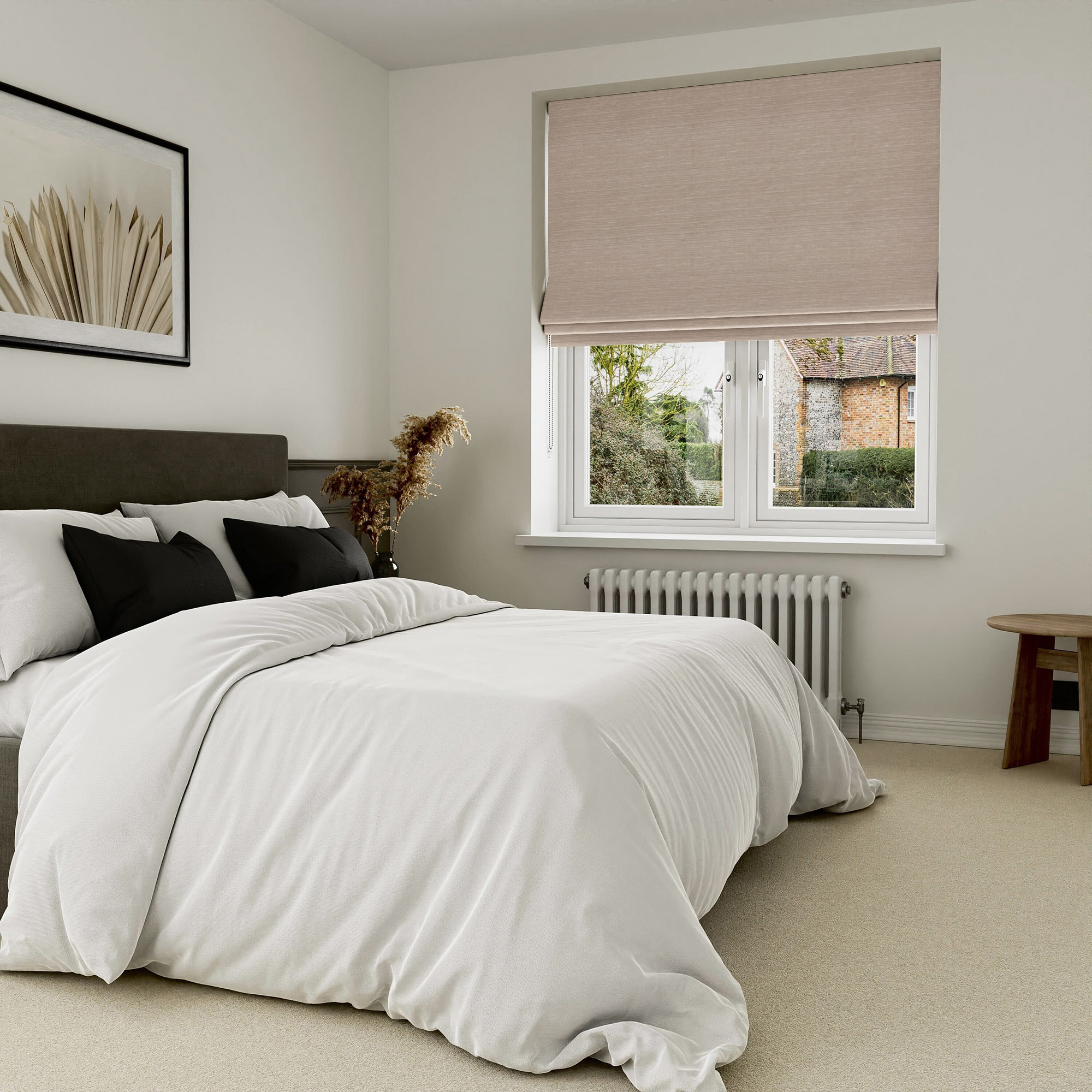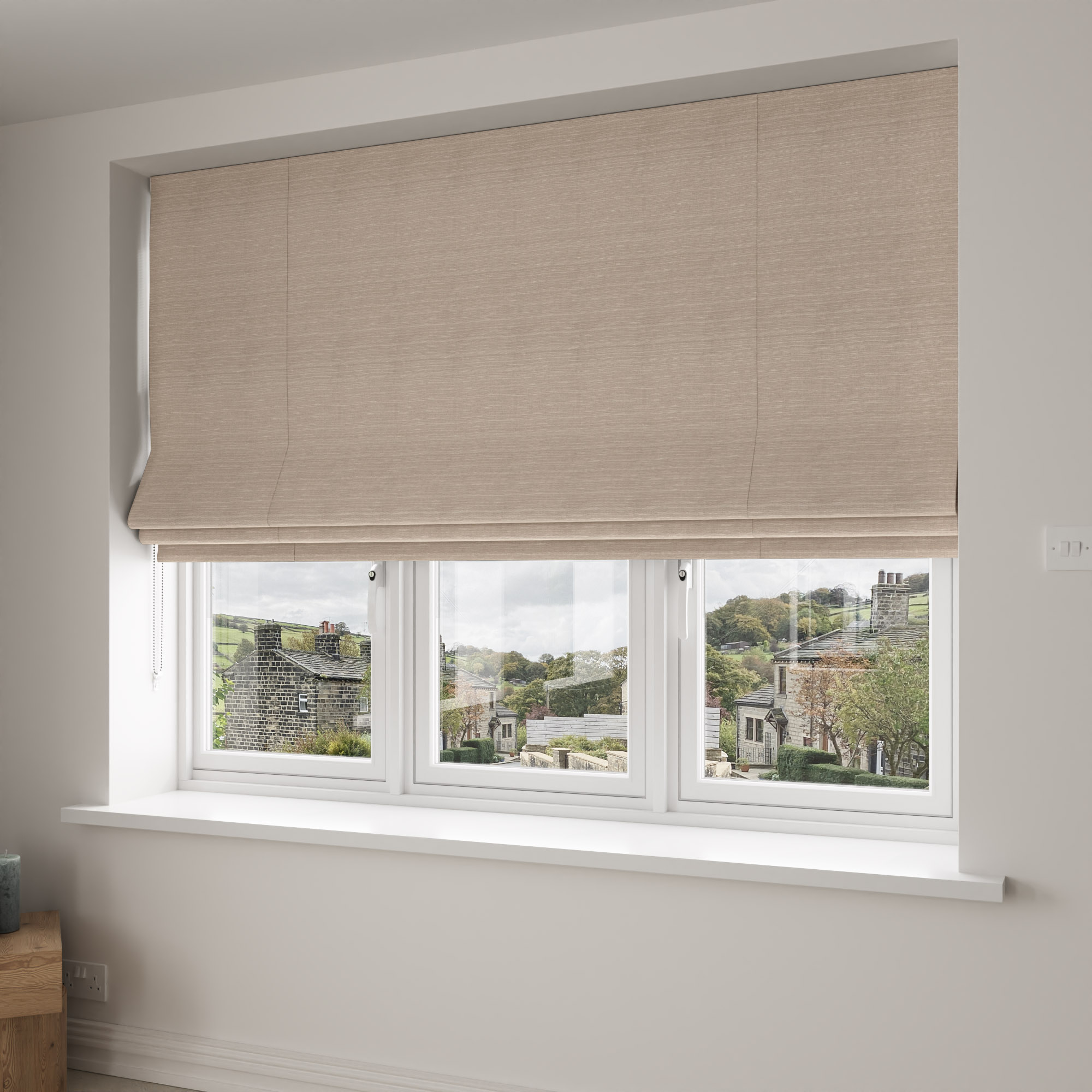 Roman blinds can be fitted inside the window recess or outside of it, so you’ll need to decide this before measuring up. Remember to allow for the stacking height when measuring, and follow our measuring guide online.