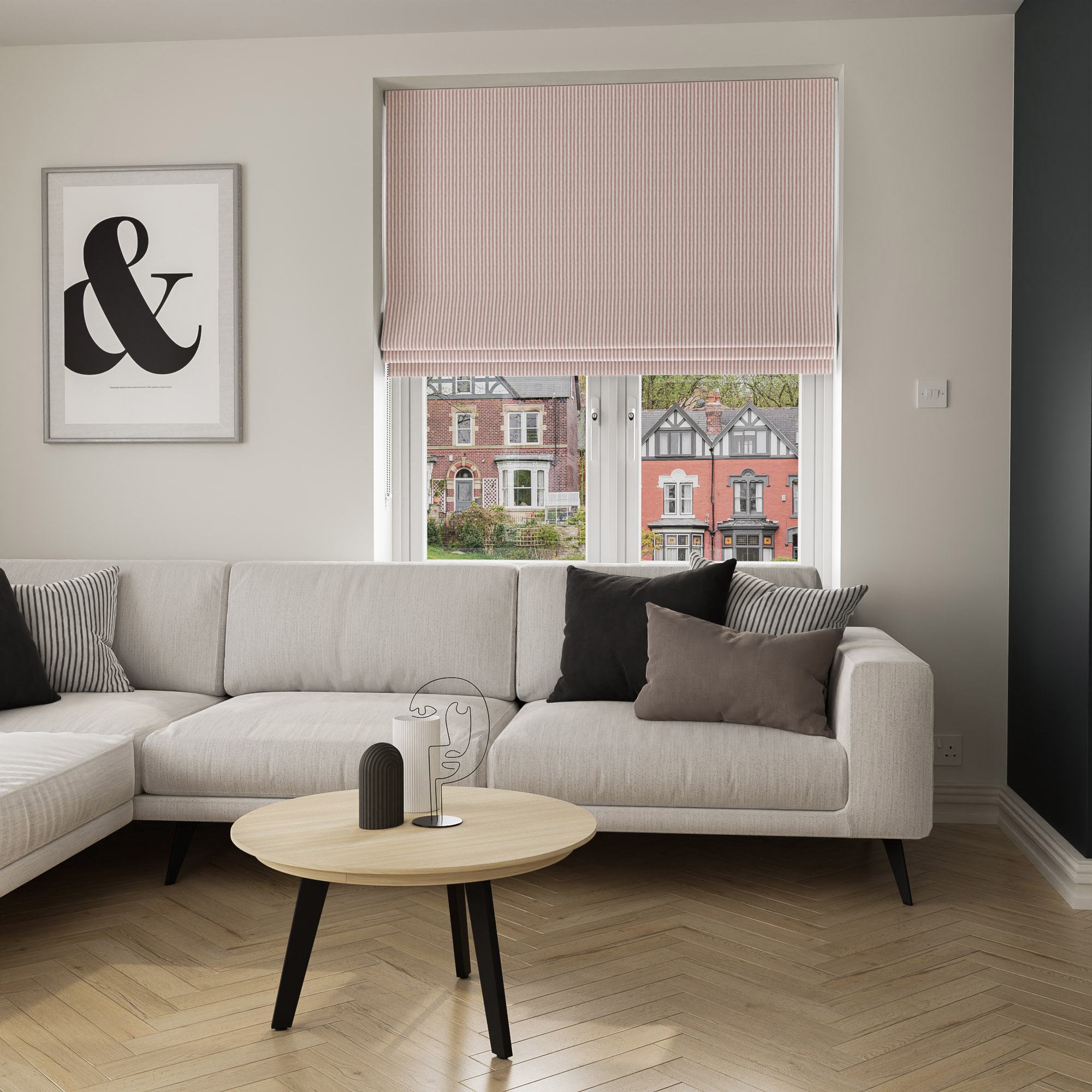 Roman blinds can be fitted inside the window recess or outside of it, so you’ll need to decide this before measuring up. Remember to allow for the stacking height when measuring, and follow our measuring guide online.